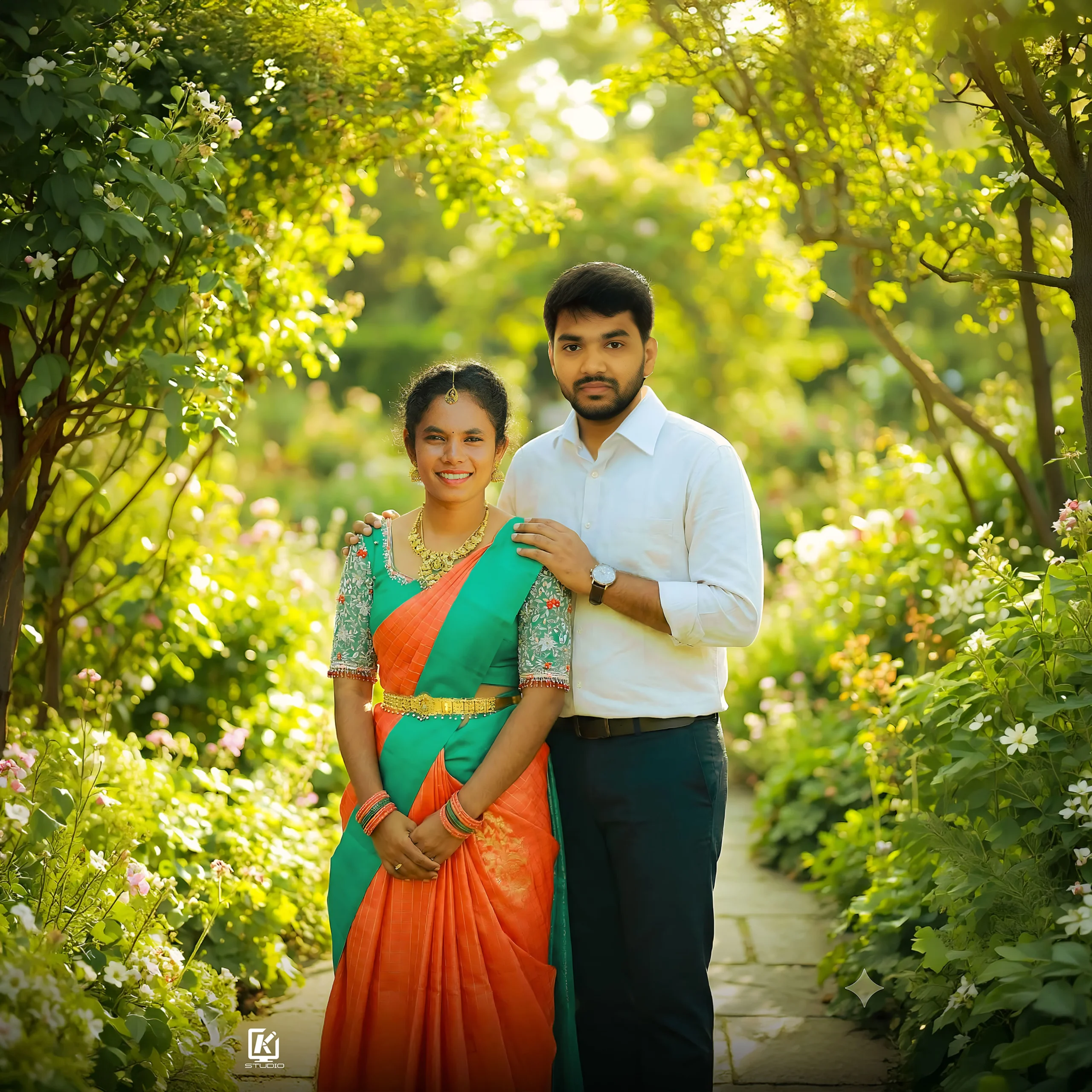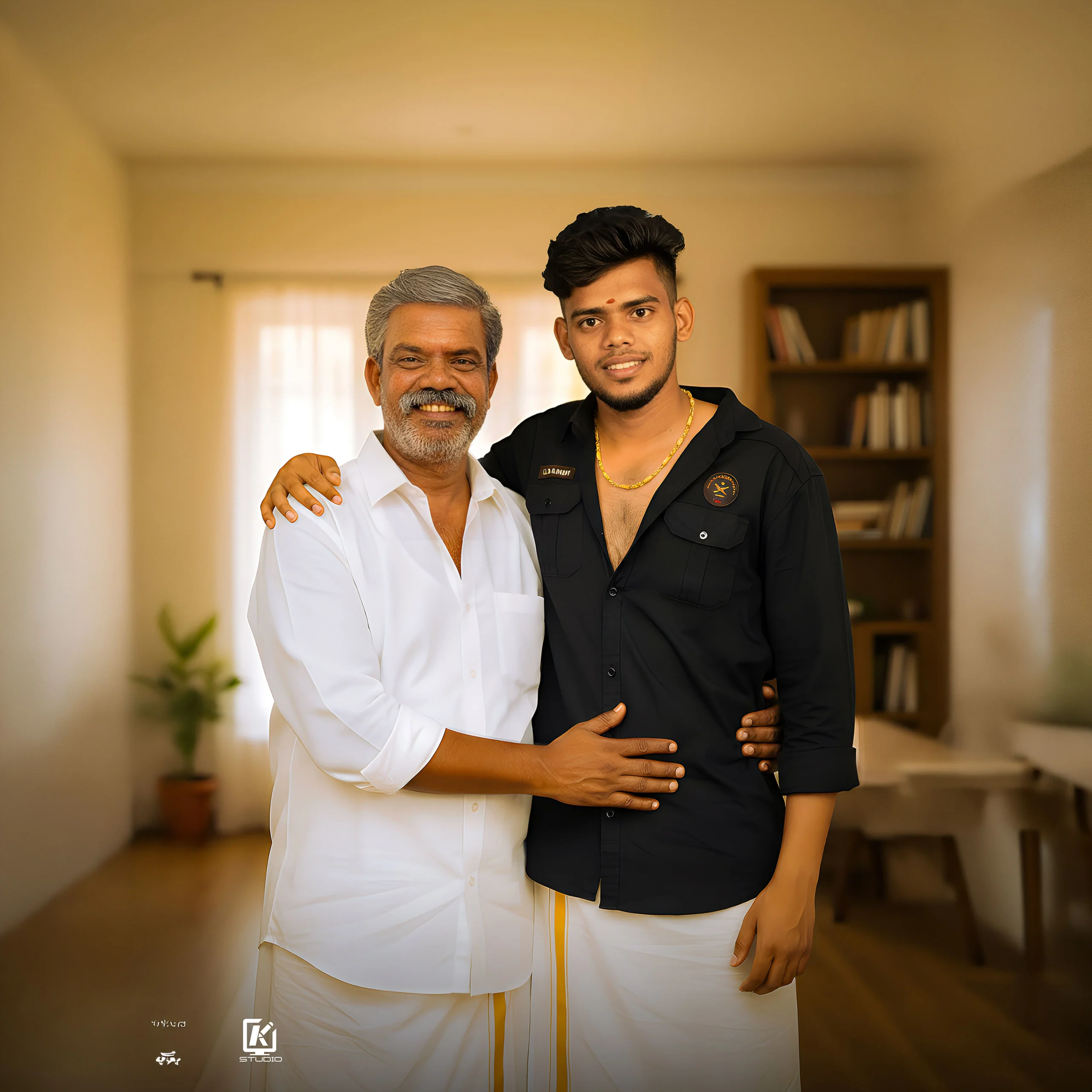 We take your separate photos and combine them into one single picture. It will look real, like all people are together in the same moment. You can change everything like pose, background, dress and full design based on your wish. This is fully manual work done by our designers, not automatic editing. So every design is unique and carefully made. This is mainly used to create special memories and emotional moments. Finally, we give it as a beautiful framed artwork.